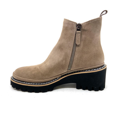 Taupekleurige enkellaarsje van het merk XSA voorzien van een ritssleuting.